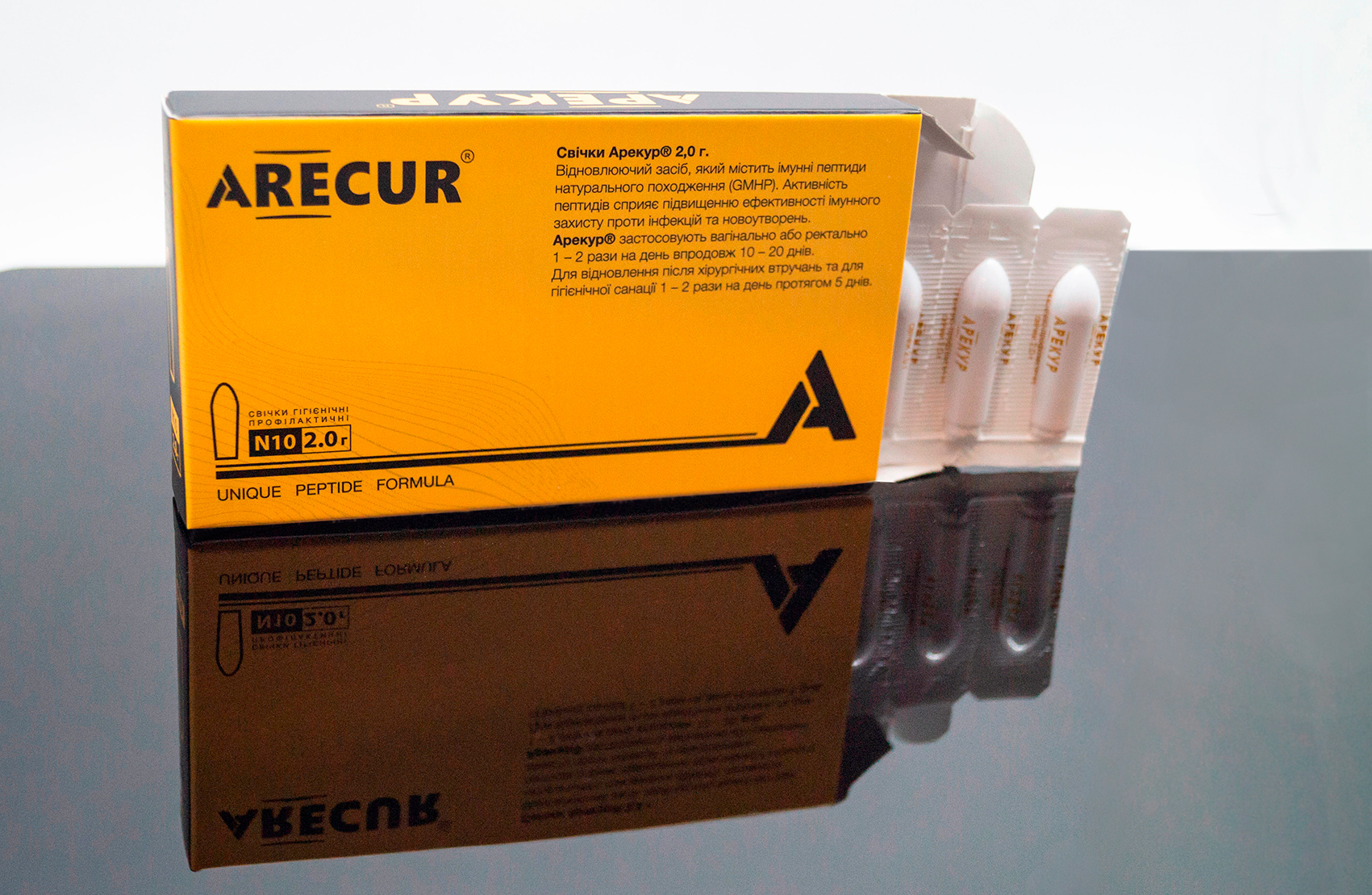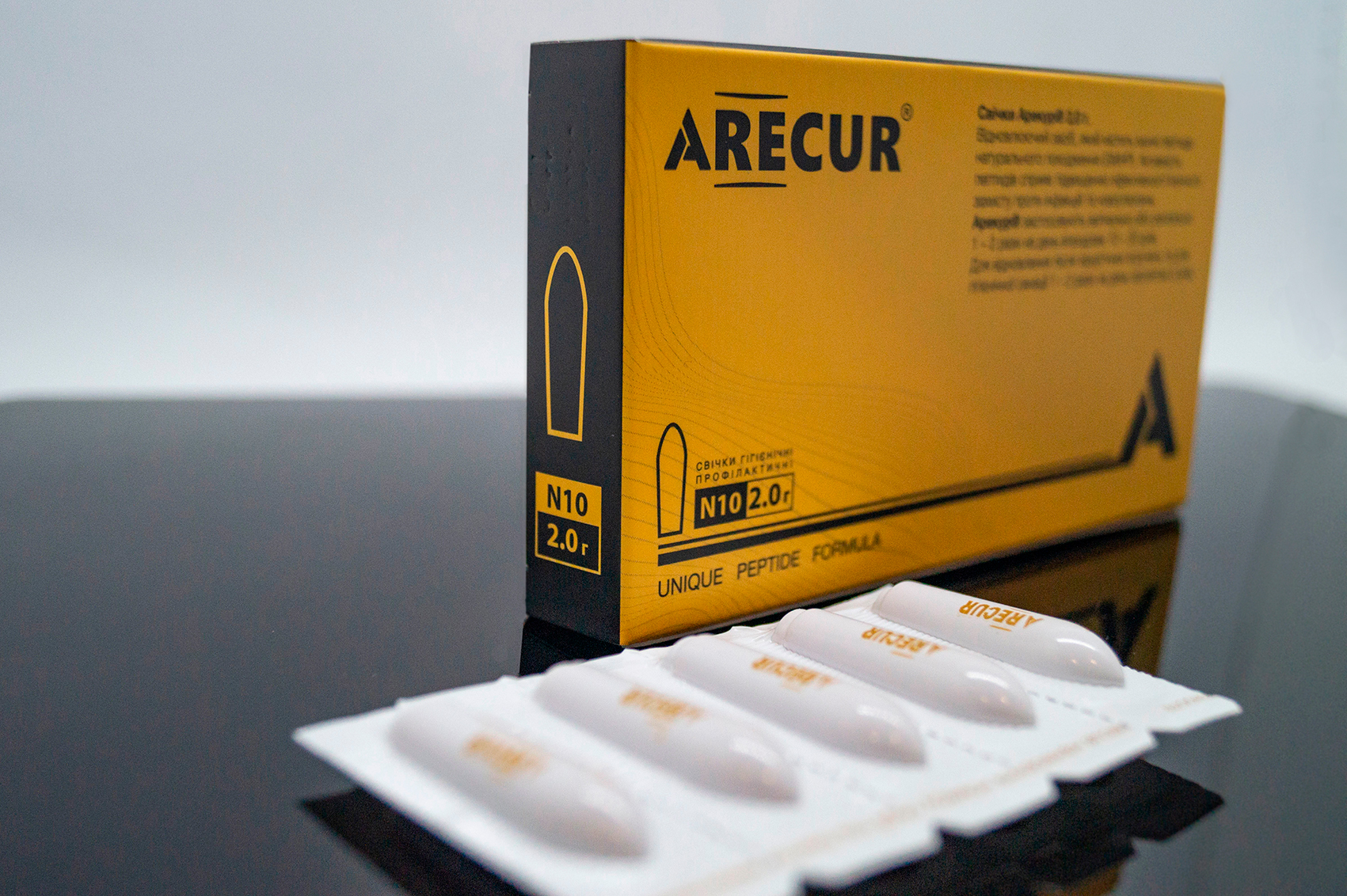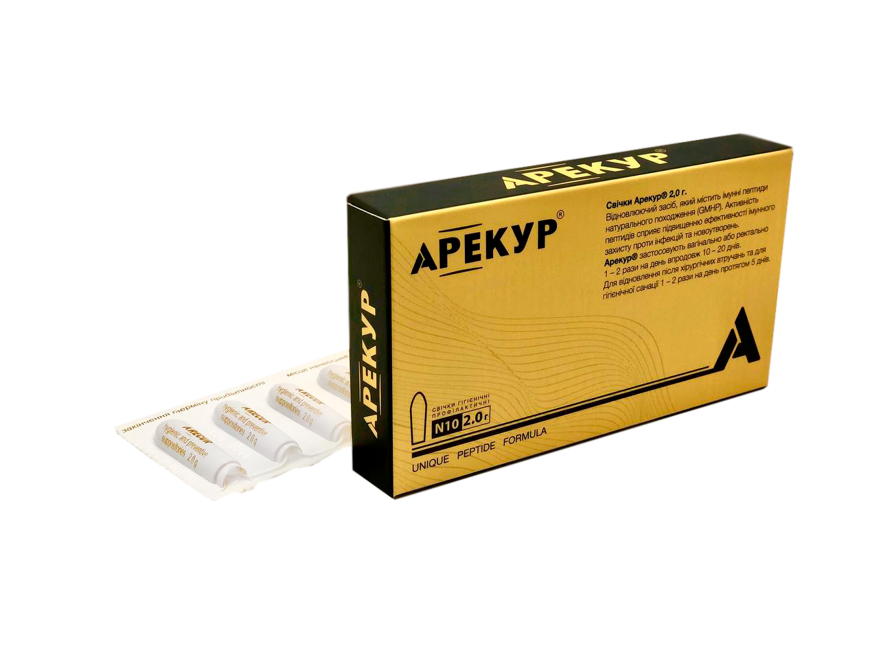 Свічки Арекур® містять біологічно активну речовину, яка складається з імунних пептидів RJP-1 та defensin-1 натурального походження, що володіють відновлюючими, протизапальними, антиінфекційними, протипухлинними властивостями.